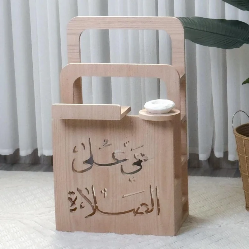 الوظائف: يتسع لسجادتي صلاة + رف للمصحف + حامل جانبي للبخور والسبحة.